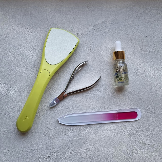Nach dem Schneiden und Feilen der Nägel geht es auch der Nagelhaut an den Kragen! Mit der spitzen Seite der Glasfeile von Gabriele Salvete gehe ich vorsichtig an der Nagelhaut entlang und löse sie so etwas. Mit der Diva & Nice Nagelhautzange kann ich die überschüssige Nagelhaut dann einfach abschneiden. Die Nagelhautzange unterscheidet sich bei der Anwendung und dem Ergebnis von einer Nagelschere. Das Delia Cosmetics Nagelöl pflegt die Nagelhaut im Nachgang und lässt sie super gepflegt aussehen.